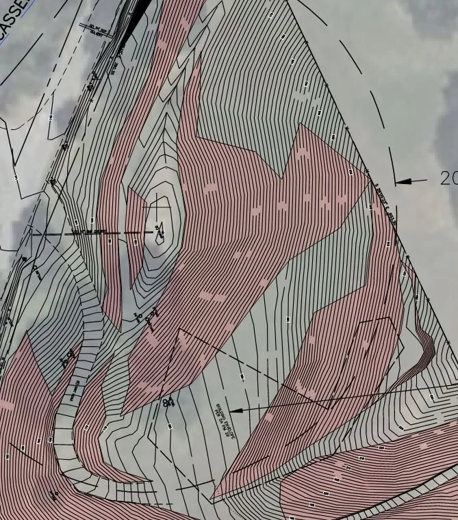A topographic survey map is used to identify the optimal location for septic components such as treatment units, tanks and leachfields.