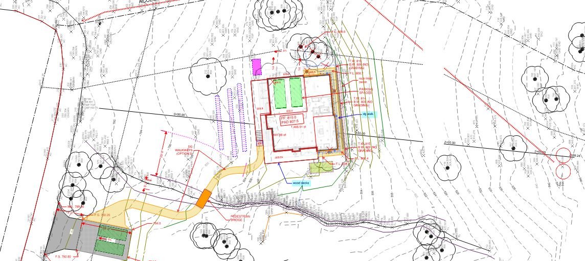 We work with your other consultants to coordinate and arrange site elements such as driveways, dwellings, additional structures, septic systems and storm drain networks.